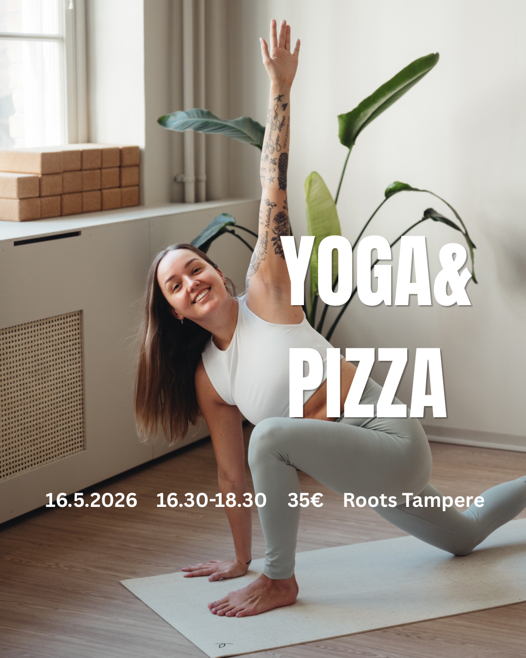 Hinta: 35€ (sisältää joogatunnin, pizzan ja juoman)