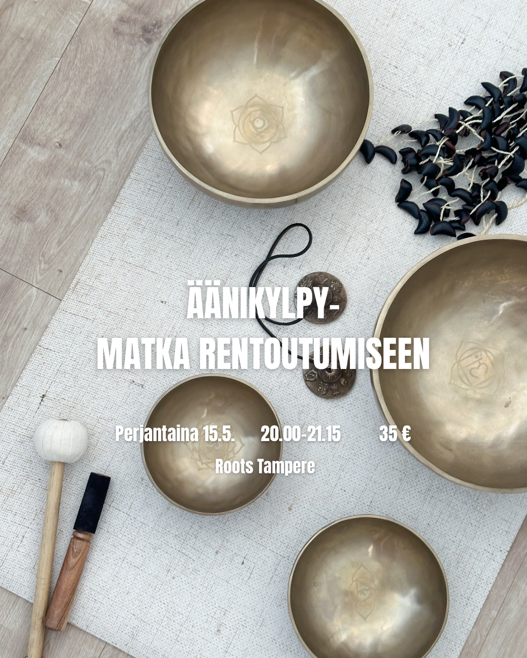 Tule kokemaan syvärentoutus, jossa sinun ei tarvitse tehdä mitään – saat vain olla. Tunnelmallinen tila täyttyy tiibetiläisten, käsin taottujen äänimaljojen lempeästä soinnista ja värähtelystä, joka kulkeutuu kehon läpi rauhoittaen mielen ja vapauttaen jännityksiä.